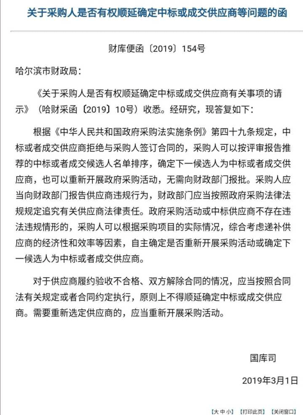 關(guān)于采購人是否有順延確定中標(biāo)或成交供應(yīng)商商等問題函